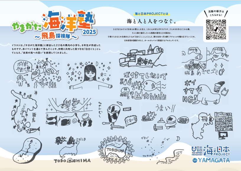 一般社団法人海と日本プロジェクトin山形は、山形県唯一の有人離島”飛島”で8月に開催された「やまがた海洋塾2025~飛島探検隊」に参加した小学生の海への思いが詰まったランチョンマットが飛島島内で活用されます。このイベントなどは、次世代へ豊かで美しい海を引き継ぐために、海を介して人と人とがつながる“日本財団「海と日本プロジェクト」”の一環です。