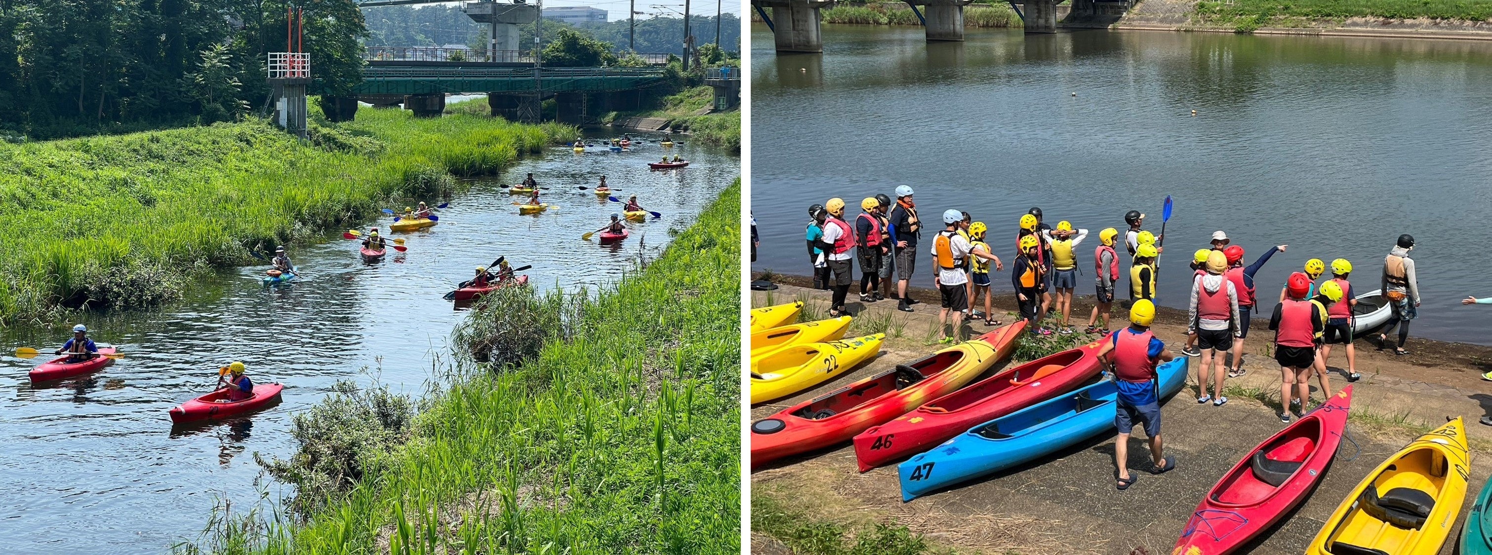 子どもたちは実際にサケが遡上するルートをカヌーで辿り、なぜサケが減っているのか、どんな対策が行われれているのかを体験しました。はじめは月光川河口から牛渡川、山の麓にある箕輪鮭孵化場へと川を上りました。月光川は湧水が源流であるため水に触れた子どもたちはその冷たさに驚いていました。この水温の低さもサケが育つうえで重要な要素なのだそうです。また、箕輪鮭孵化場の近くには「丸池様」という、湧水だけで満たされた美しい池があり、地元では古くから神聖な場所として大切に守られています。冷たい湧水が絶え間なく入れ替わるため、倒木が朽ちる事なくずっと池の底に沈んでおり、その神秘的な様子に子どもたちも思わず息を飲みました。カヌー体験中子どもたちは水温の変化を自らの手で感じ、サケは故郷の冷たい水を目指してやってくるんだね、流れに逆らって進むのは大変だが遊佐の冷たい水は最高のご褒美だねなどと感想を語っていました。